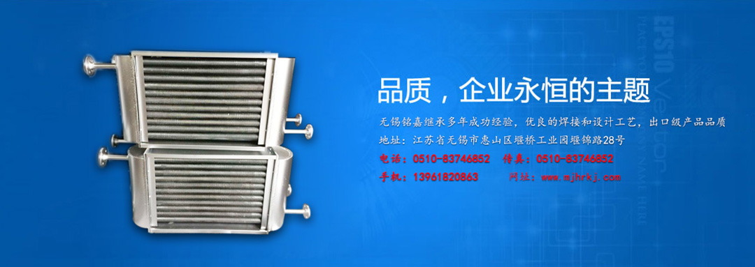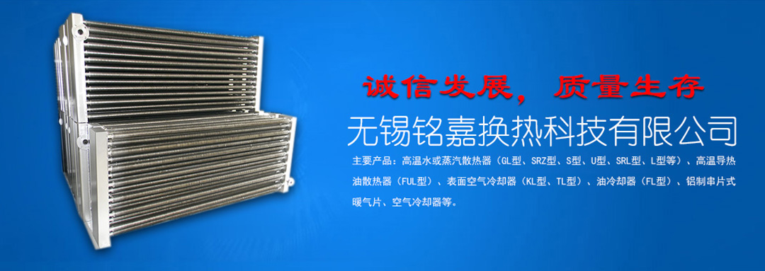 無錫銘嘉換熱科技有限公司是生產散熱器的專業工廠。 產品有:高溫水或蒸汽散熱器高溫導熱油散熱器、表面空氣冷卻器油冷卻器鋁制串片式暖氣片、空氣冷卻器、翅片管換熱器